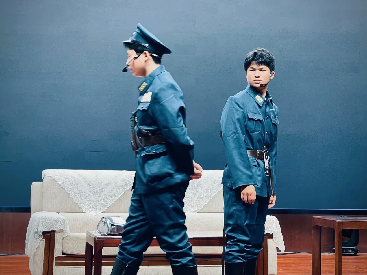 四部短剧主题各不相同,但都表达着社员们对生活的理解和对社会的关注。在《史上第一大劫案》中,劫匪“抢走”了打卡机、故障电脑、漏电警棍、爱心早餐等匪夷所思的东西,轻松的喜剧表象下满是职场打工人的辛酸与对自由的渴望;《青衣》以曾经的一代名角筱燕秋对戏曲艺术的执着追求与求而不得,折射出特定时代背景下个体的困境;《暗处的阳光》通过一对父女的艰难抉择,展现了黑暗困境中的人性微光;《武昌·1911》以历史横截面,呈现民族大义与个体幸福的碰撞与统一。值得一提的是,四部短剧中前两部改编自成品剧作,后两部则是剧社自编自导的原创短剧。