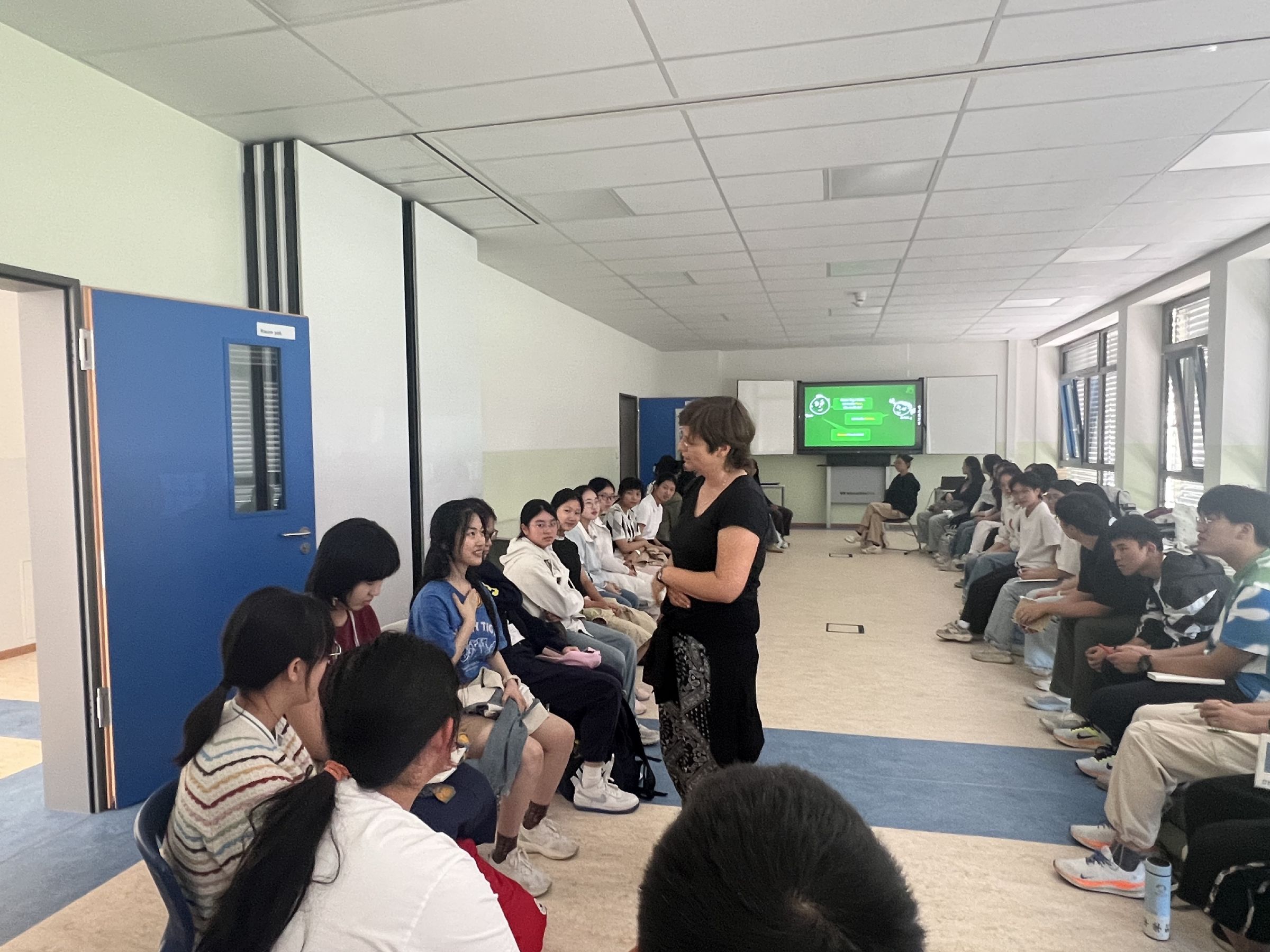 在德期间,青少年友好使者们和结对伙伴一起学习,通过深入德语、自然科学、哲学、历史、体育、艺术等课堂,直观感受德国教育模式。学生们能顺利地用英语和师生交流,积极参与融入到学校生活中,快速适应跨文化沟通,也学会用简单德语交流,展现了很好的适应能力。中方教师和瑙恩霍夫高级文理中学的教师们也进行了深度交流,讨论了两国课程设置、教学评价、生活方式等方面的差异。