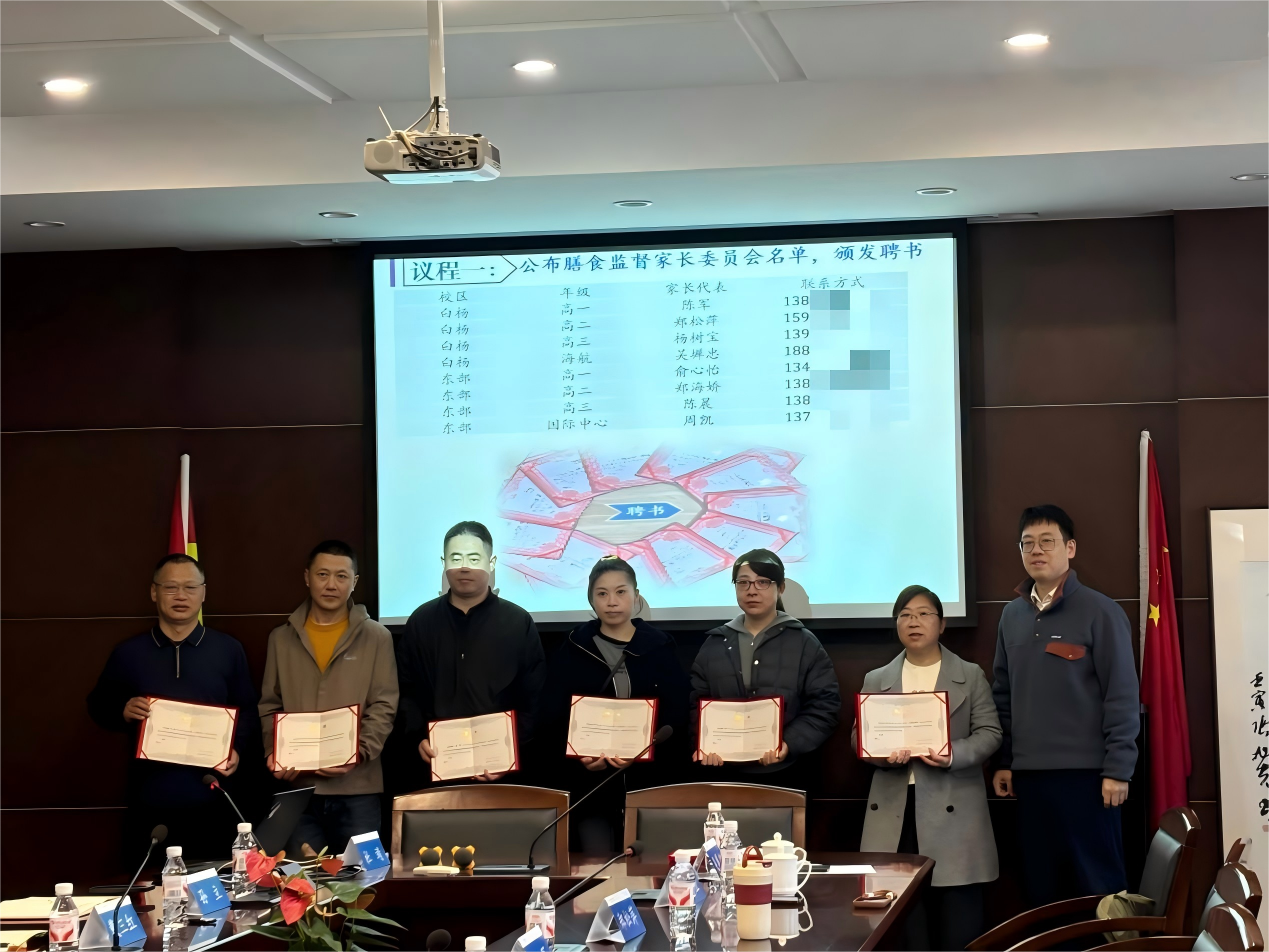 为强化校园食品安全管理,深化家校社协同共治,提升校园餐饮服务品质,近日,效实中学两校区2025学年膳食监管委员会会议顺利召开。会议由后勤装备处牵头,校长孙立、副校长戴三红、东部校区后勤装备处副主任杜靖、白杨校区后勤装备处负责人胡惜余两校区食品安全员俞定龙、彭新建,宁波市甬教餐饮服务有限公司代表钱科研、陈寅、王继立,宁波海曙灏洁餐饮管理服务有限公司总经理范斌及两校区食品安全总监赵敏、汪春燕,以及东部、白杨两校区各年级家长代表出席会议。东部校区后勤装备处副主任杜靖主持会议。