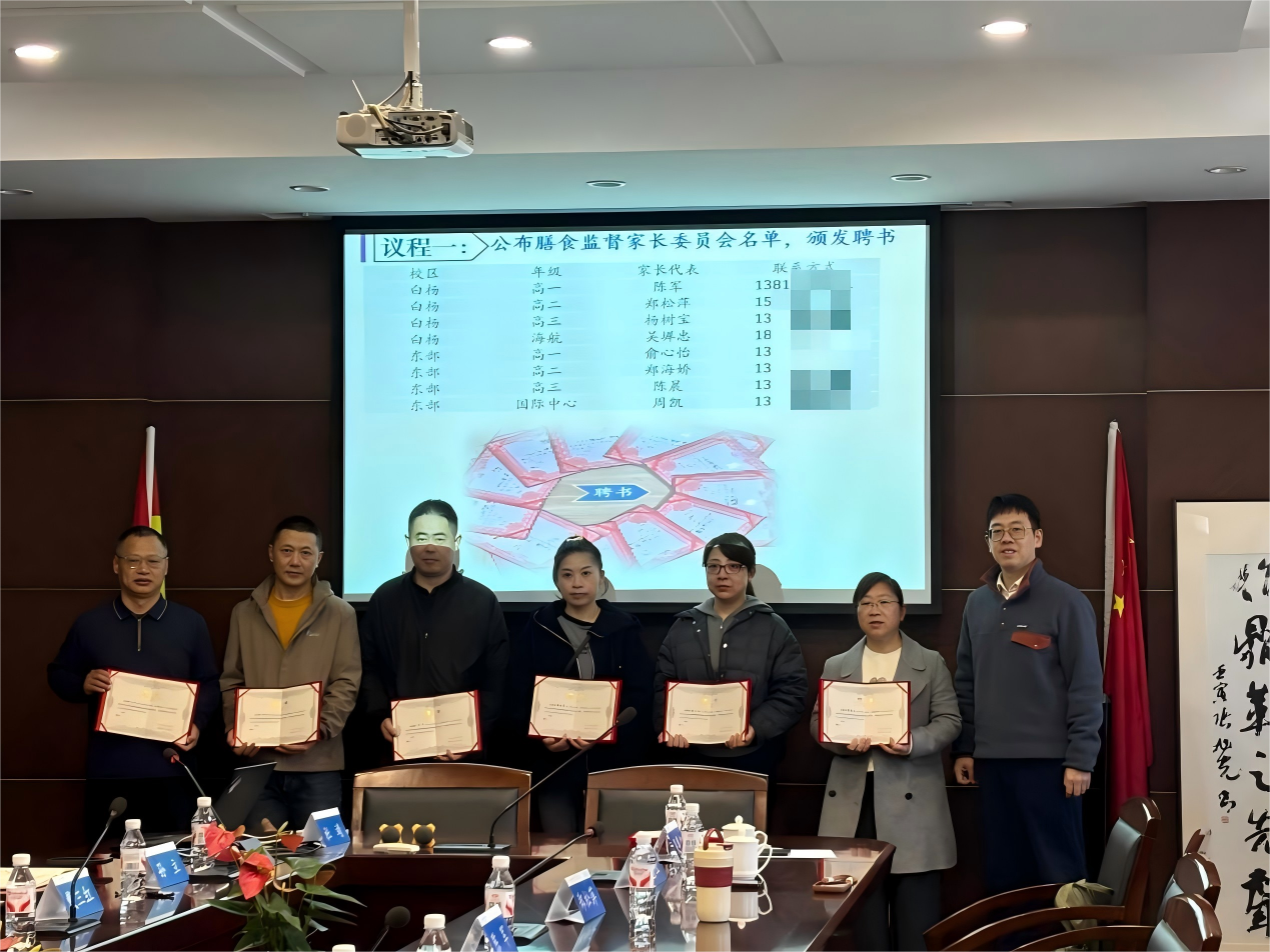 会议伊始,现场公布新一届膳食监督家长委员会名单,孙立校长为全体家长代表颁发聘书,并对家长们主动参与校园膳食监管工作表示诚挚感谢。他指出,家长代表是家校协同监管的重要力量,希望大家充分发挥监督作用,助力学校持续提升膳食管理水平,共同守护学生饮食安全。