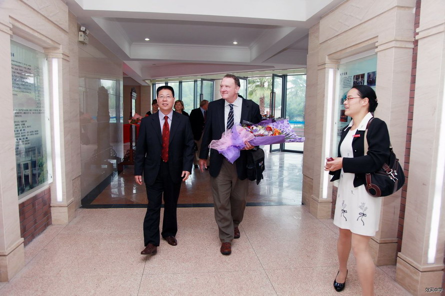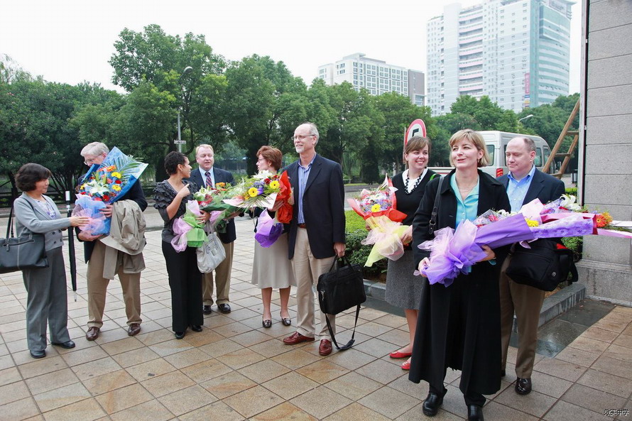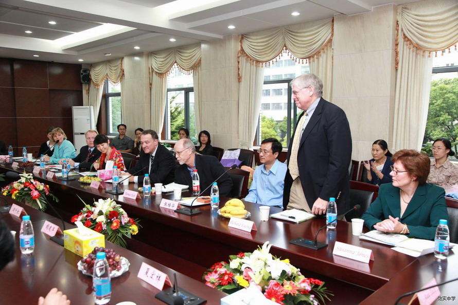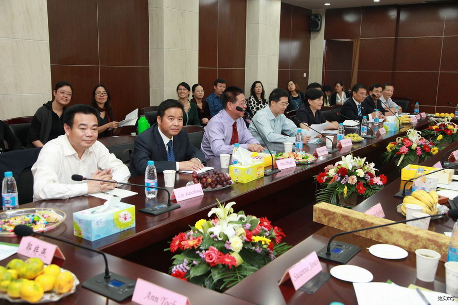 十月十二日,在美国安生文教基金会主席张梧华教授的安排和陪同下,美国大华盛顿地区私立学校协会执行总监Thomas Toch 先生率领八位优秀私立学校校长和教务主任等来到我校访问。宁波市教育局副局长陈文辉亲自到效实中学欢迎他们的到来。