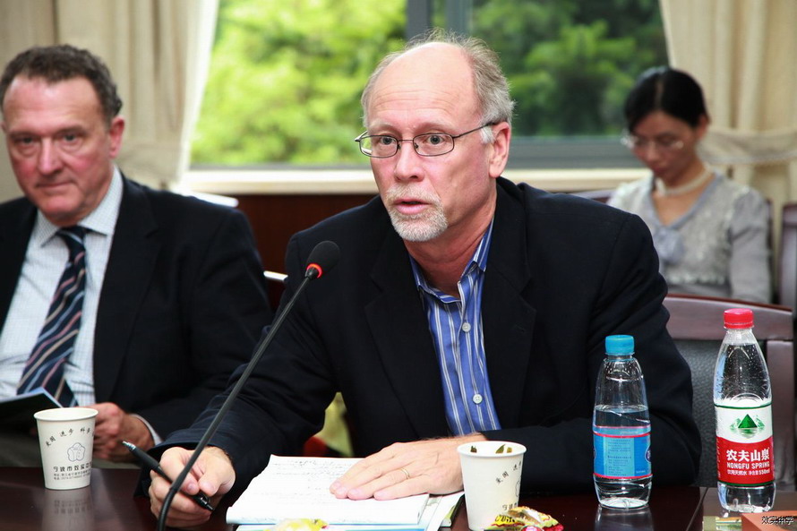 欢迎仪式结束后,在宁波市教育局的安排下,城区六所初高中的校长来到我校与来自大洋彼岸的校长们对话,共同探讨当前国际教育交流与合作的现状和理想模式。市教育局基教处处长汪维民出席了本次对话并介绍了宁波的教育发展情况。来宾们希望与宁波的初高中加强沟通与交流,开展多层次多形式的合作,促进宁波和大华盛顿地区的教育发展。