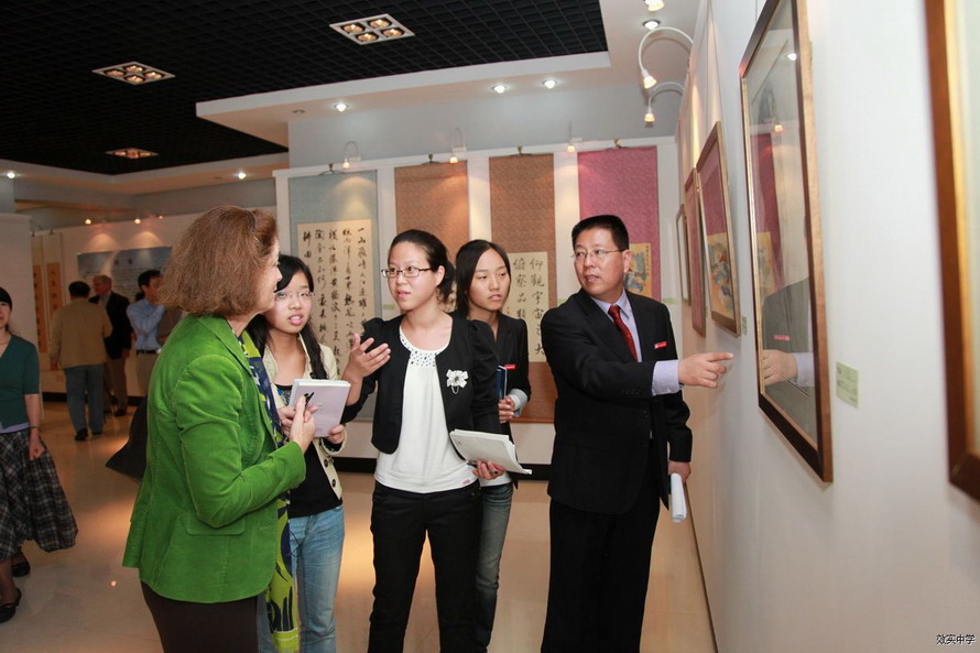 参观我校学生书画展厅