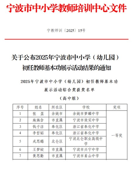 我校教师在2025年宁波市中小学初任教师基本功展示活动中喜获佳绩