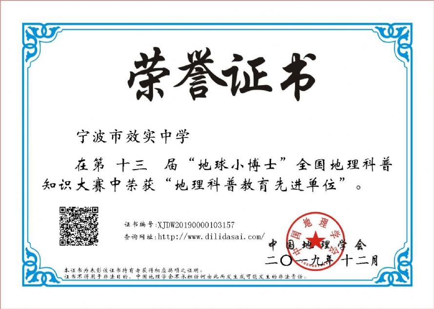 恭喜效实学子在第十三届“地球小博士”全国地理科普大赛中获得佳绩