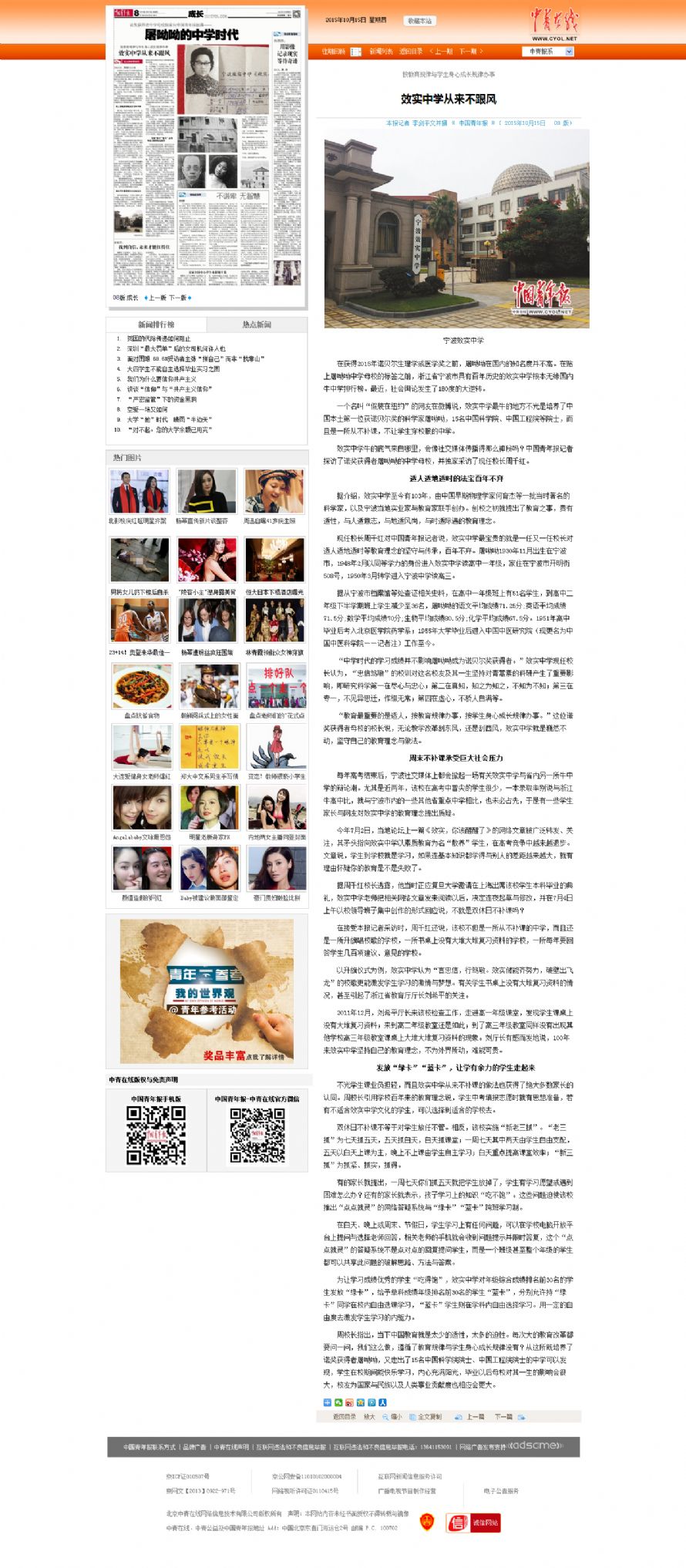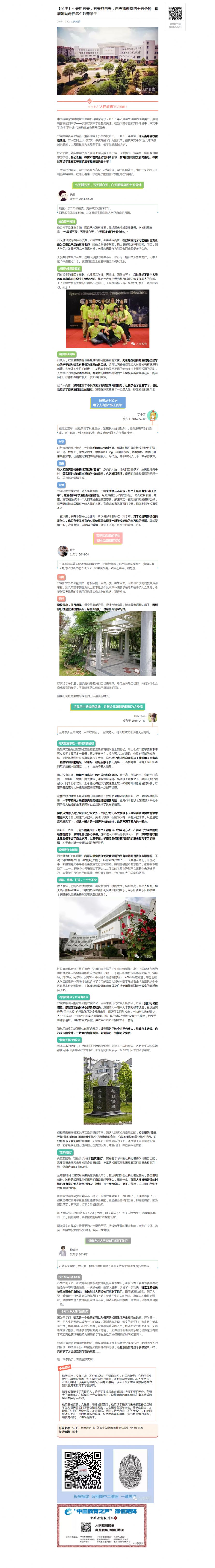2015年10月15日,《中国青年报》撰写长文《按教育规律与学生身心成长规律办事 效实中学从来不跟风》一文,...