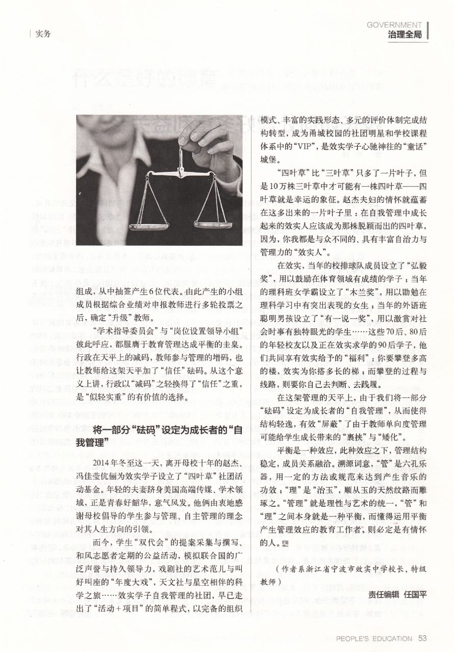 《人民教育》刊登我校《管理天平的“增码”与“减码”》一文