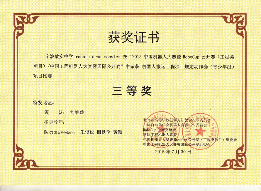 我校学生在2015中国机器人大赛暨RoboCup公开赛(工程类项目)/中国工程机器人大赛暨国际公开赛中获得佳绩