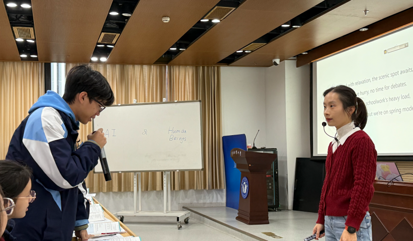 2024年12月25日,我校白杨校区高二年级辩论赛决赛在中山厅顺利举办,来自B2603班的戴舒扬、戴睿、黄启...