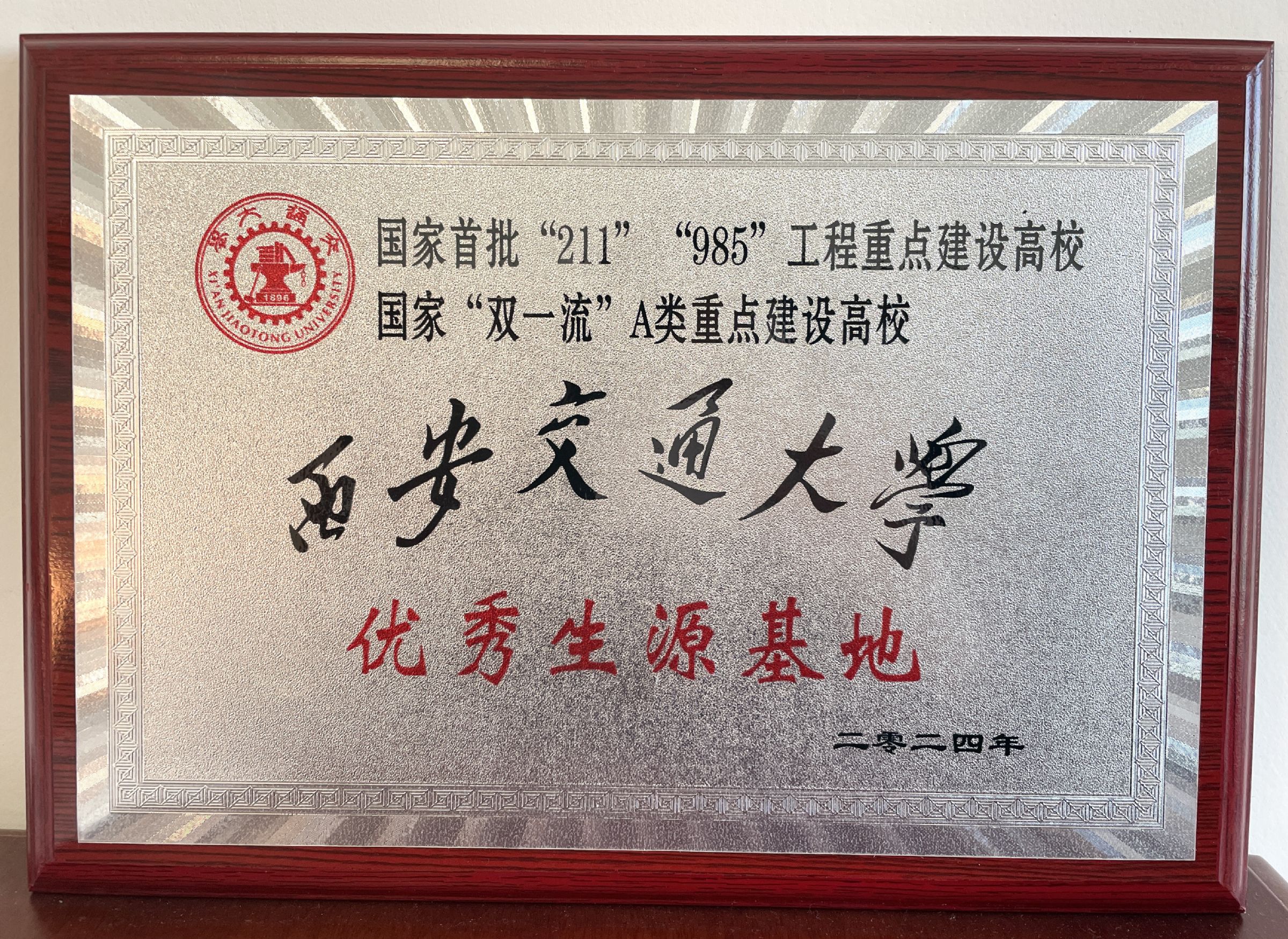 西安交通大学向我校授予“优秀生源基地”荣誉称号
