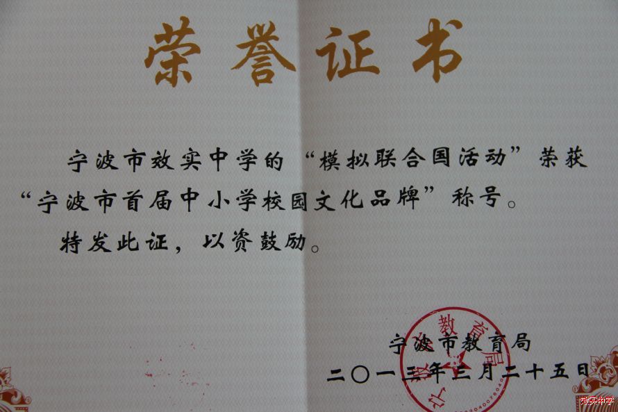 我校的“模拟联合国活动”被宁波市教育局授予“宁波市首届中小学校园文化品牌”称号 ...