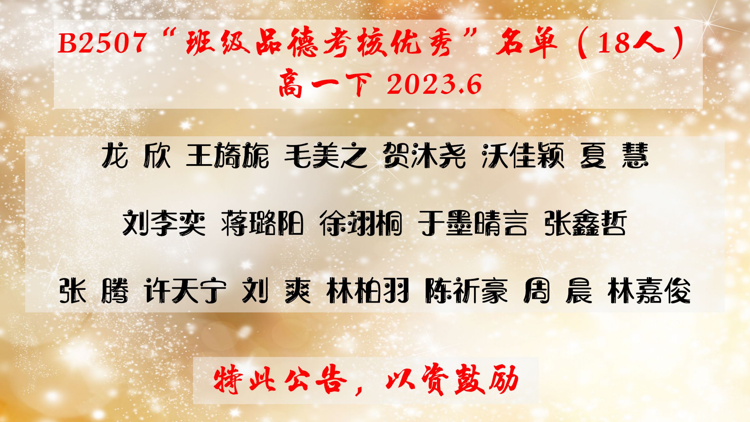 班级品德优秀者名单(高一下)