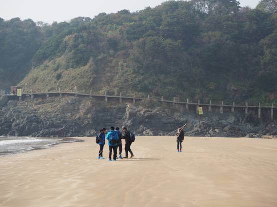 学生在月岙沙滩进行对比性质的测量