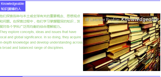 IB课程帮助学生提前接受先进的国际教育,使学生更快更好的适应国外的大学教育,保持优异成绩及成长后劲。