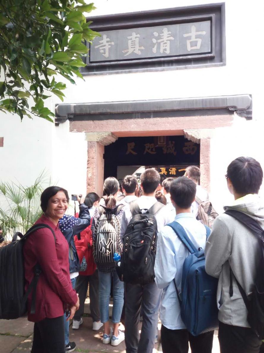在天一阁中,我们的任务成了对古典文化的探索。通过分析对联,寻找园林装饰中的传说典故等活动,我们体会到了中文学习灵活而颇具趣味性的一面。当然,思考与研究仍然贯彻其中。改变所查即所得的恶习,在对中文的探索过程中也能进行批判性思考,亦是为日后的中文学习作了很好的铺垫。