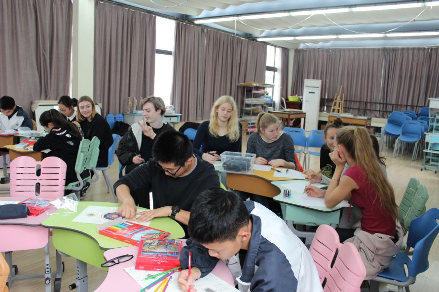 我们通过电极实验探索化学奥秘;拼剪几何领略数学精深;分享神话故事碰撞中西文化;描绘装饰图案交流无限想象。从未感觉整整一下午的课会过得如此之快。仿佛认识了许久,学到了很多。但这一切仅仅是小伙伴们友谊的开始,文化初碰撞的火星。