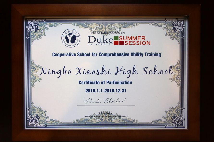 最后,裘校长代表效实中学接受Dr.Nicki Charles授予的综合能力培养合作学校证书。