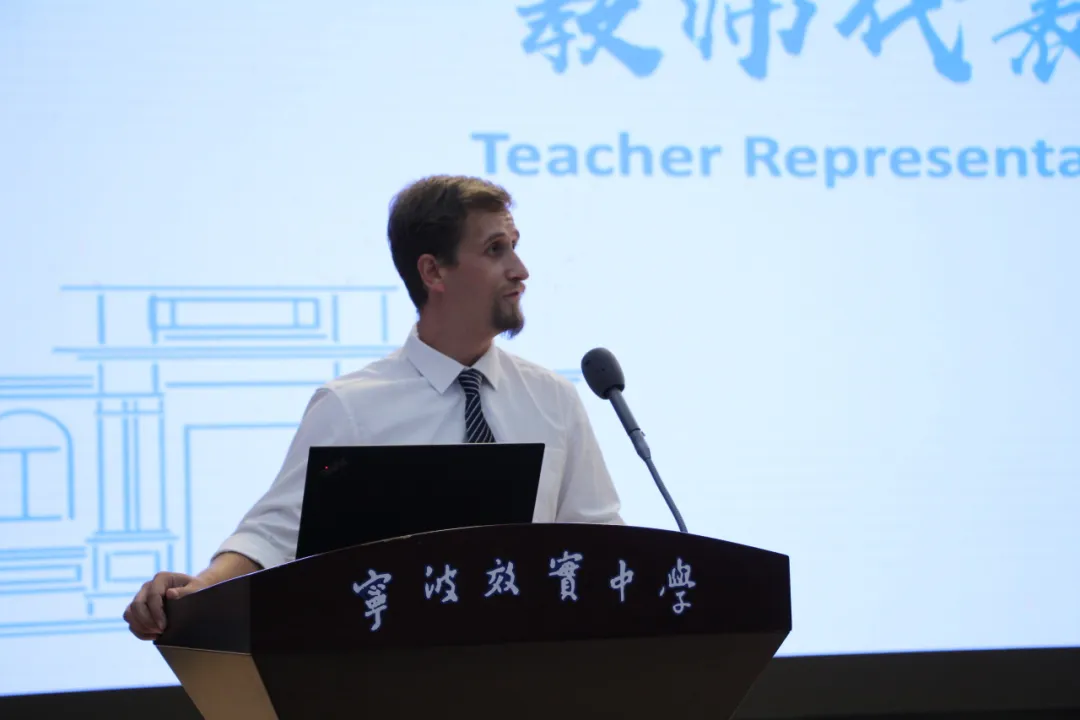 仪式上,教研协调员Mr. Tulppo作为教师代表上台演讲。