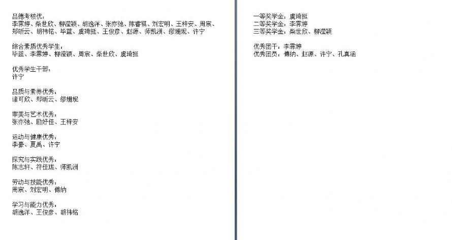 2018学年第一学期1908班评优结果公示