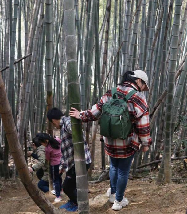 在一片欢声笑语中,我们到达了目的地—九龙源景区。达蓬山下,热情的陈诗华老师向我们介绍了此行的路线。随后,大家个个精神抖擞,意气风发,朝着山顶奋力前行。一路上,我们倾听着溪水的潺潺,