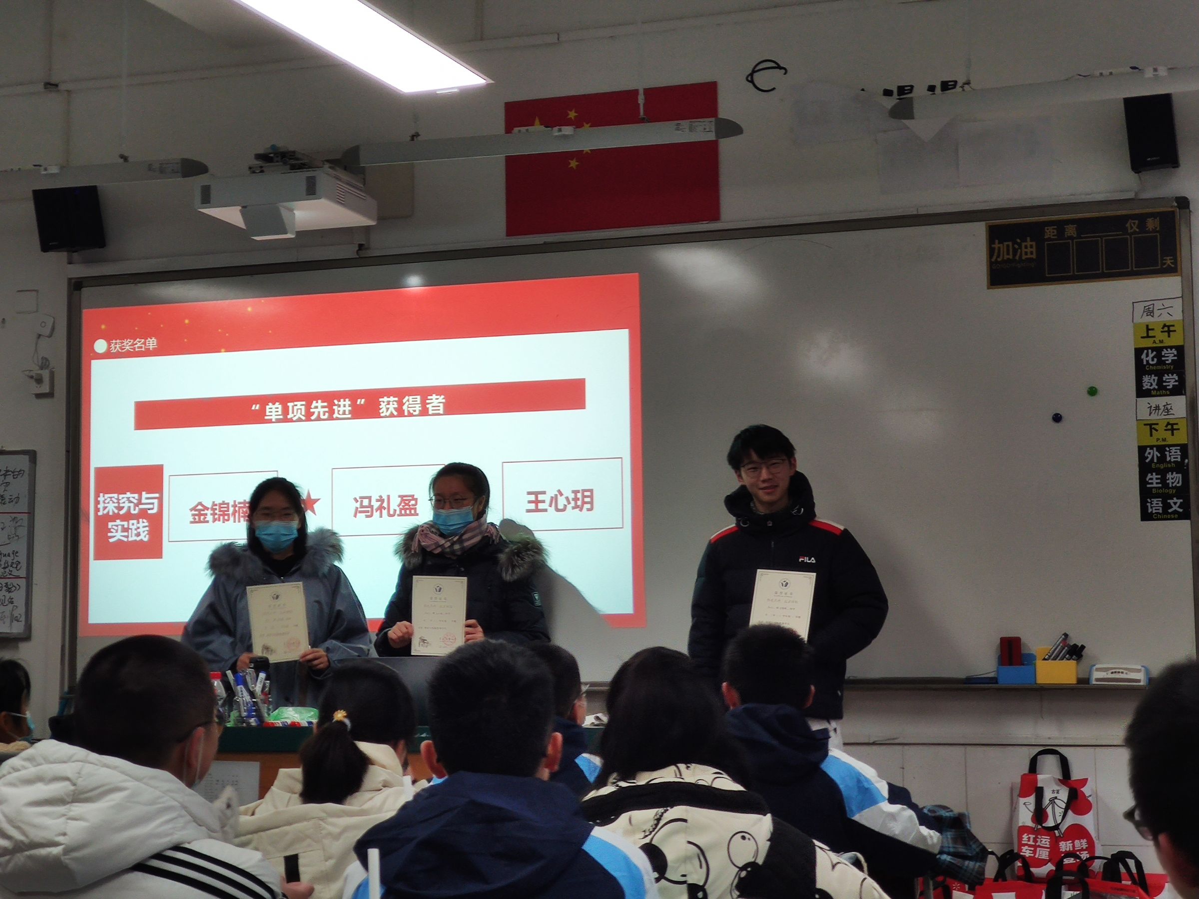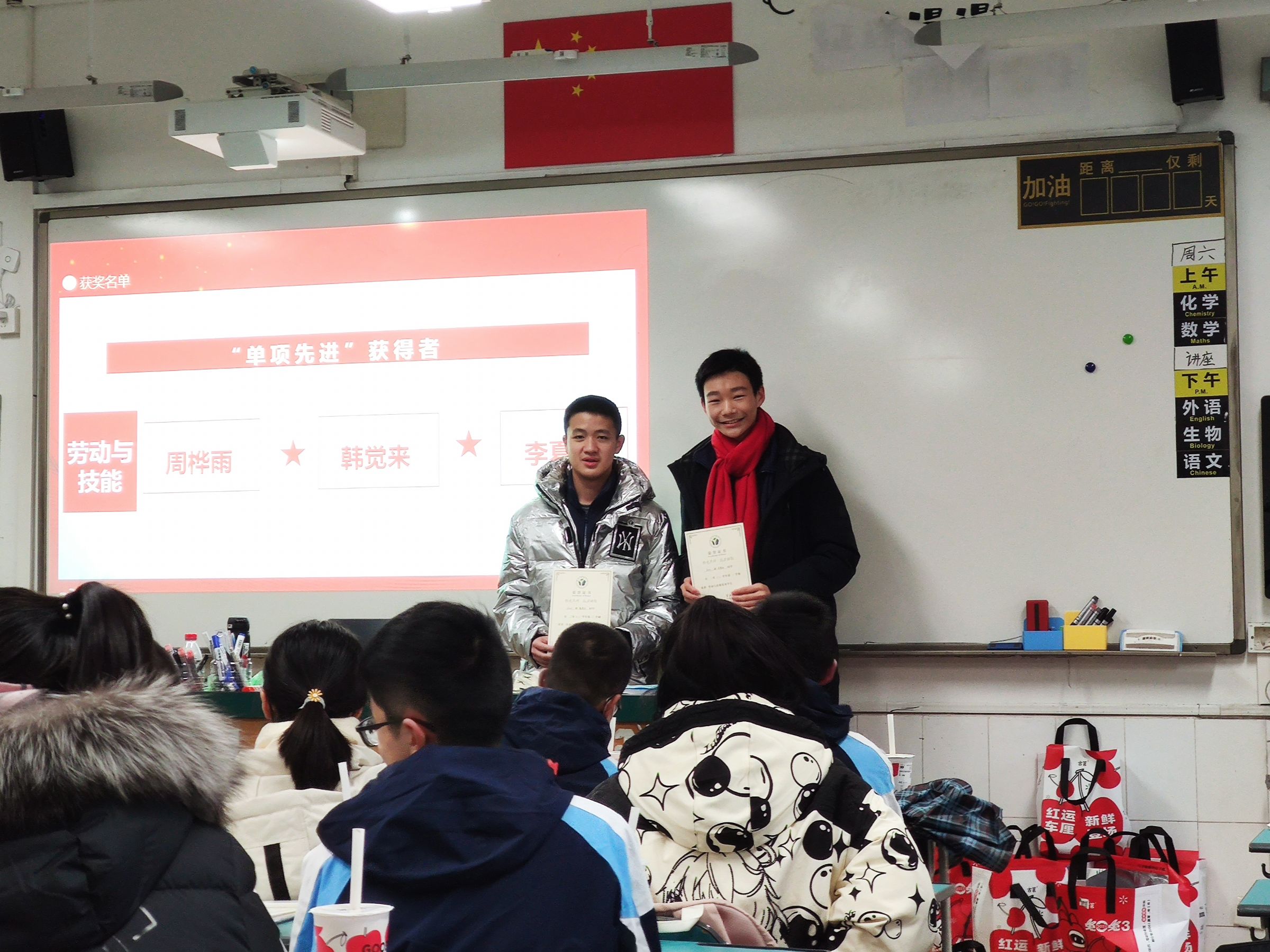 在1月15号休学式当天,我班在教室内举行了期末表彰大会,以表彰在本学期内班级里的一些榜样。
