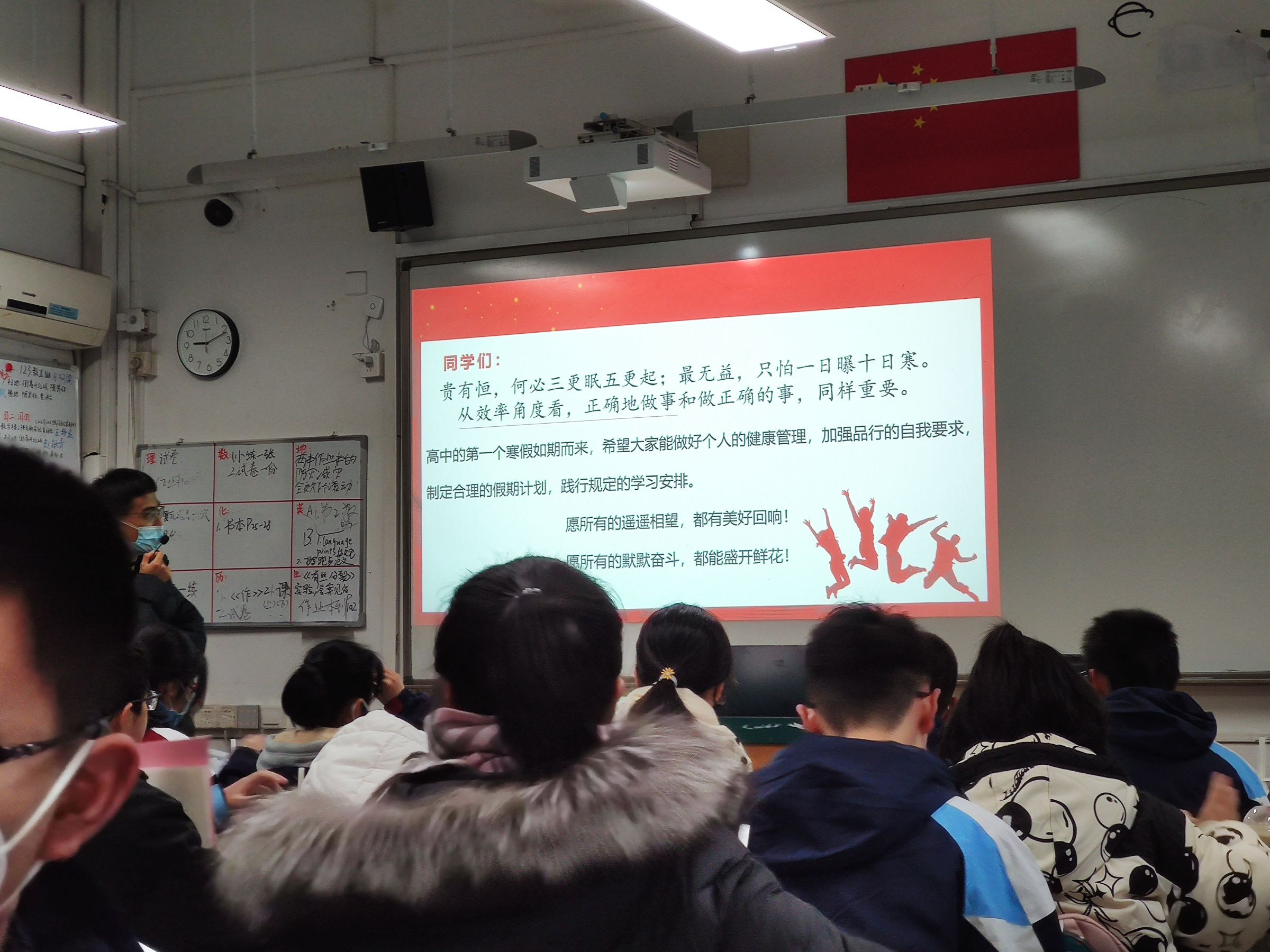 在休学式的最后,班主任沙老师也对同学们的寒假安排提出了要求,同时他也祝愿大家兔年大吉。