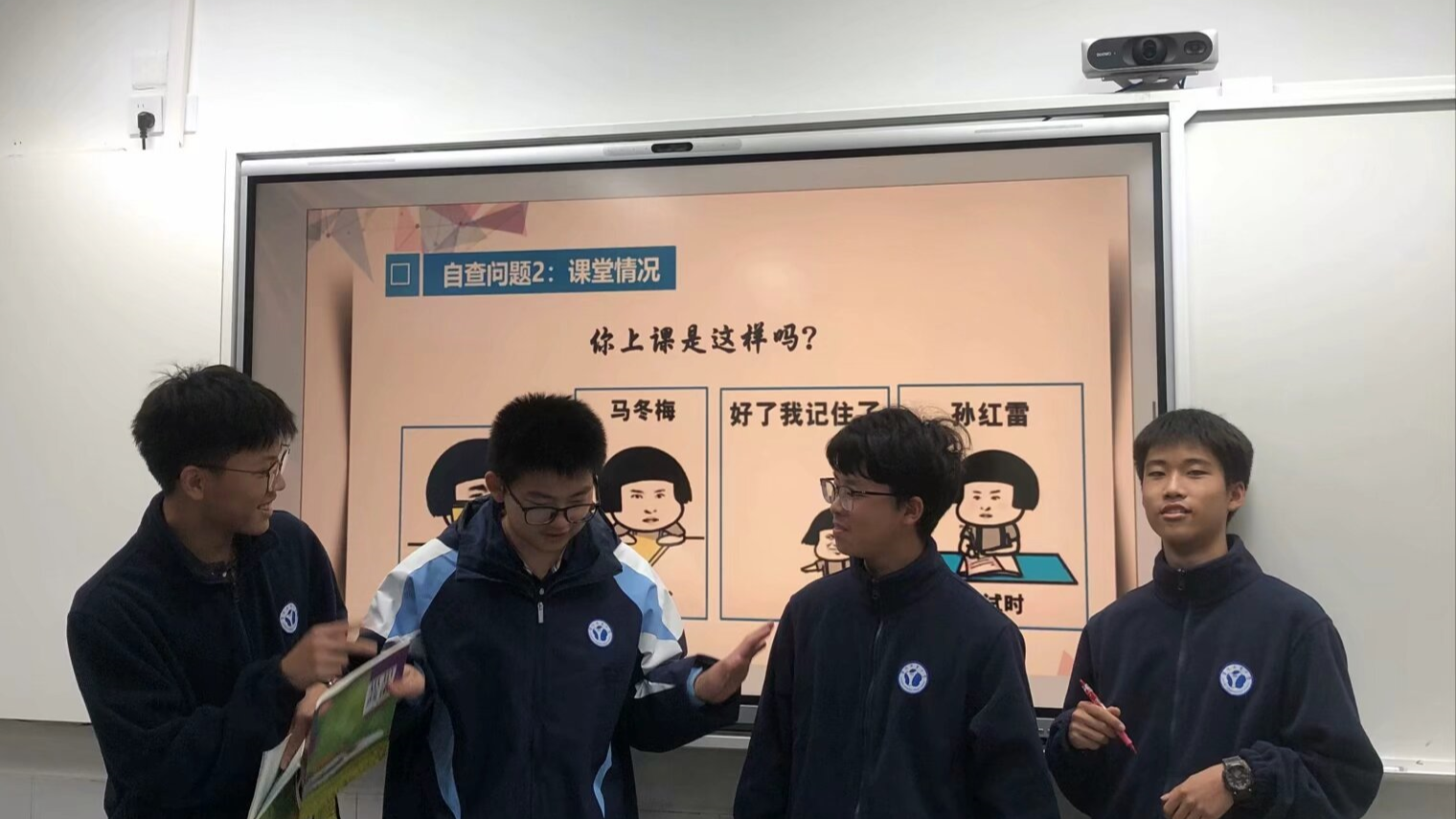 20241122最后,由班主任为本次六位遵纪守规之星拍照留念,并于电子班牌公示一周,以示鼓励。