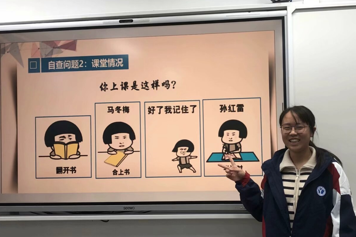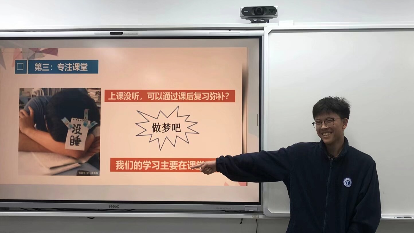 接下来,班主任表扬了在本次考试中单科表现突出与总分优异的同学。并且以周爱婷、沈飞扬两位同学为例,向大家分析了如何通过此次考试的结果分析自己的长短项,并思考自己适合的选课方式。