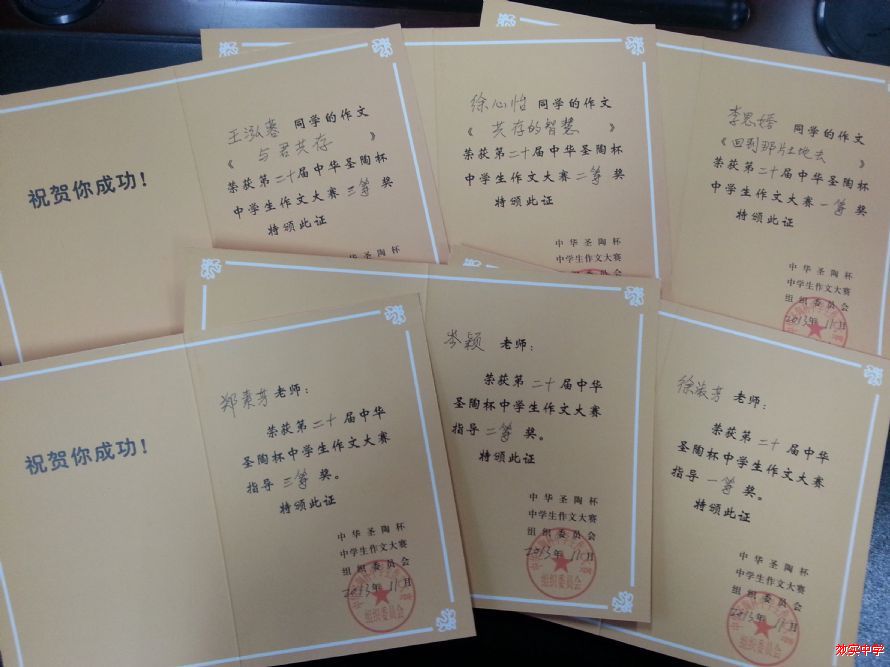 我校同学在第二十届中华圣陶杯中学生作文大赛中取得佳绩。